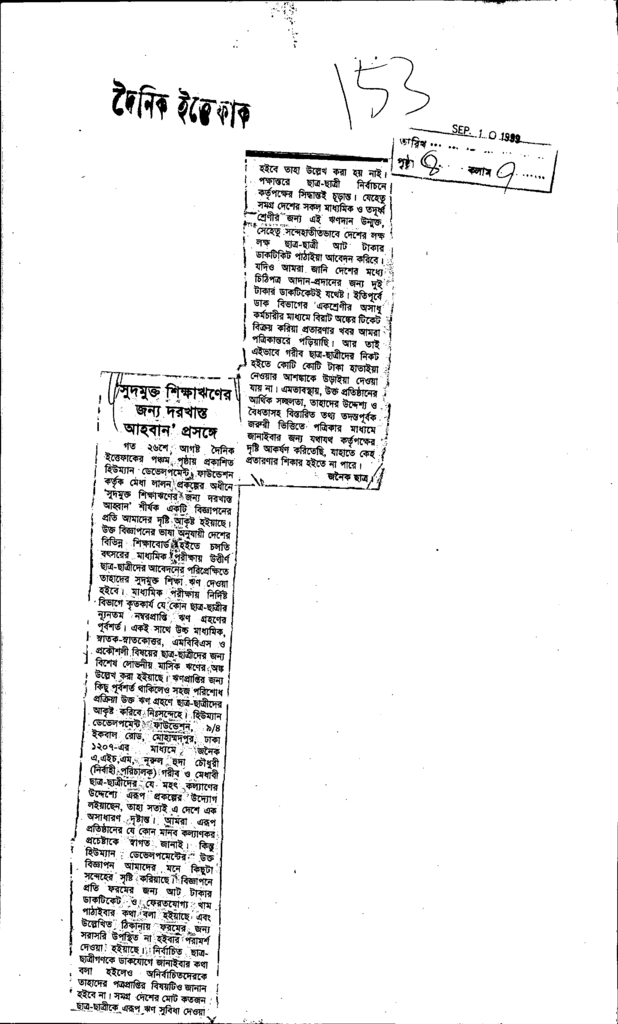 সুদমুক্ত শিক্ষাঋণের জন্য দরখাস্ত আহবান প্রসঙ্গে Published on Newspaper দৈনিক ইনকিলাব Category Personal Opinion / Discussion / Commentary Personal Speech / Discussion / Comentary Secondary and Higher Secondary Education Download