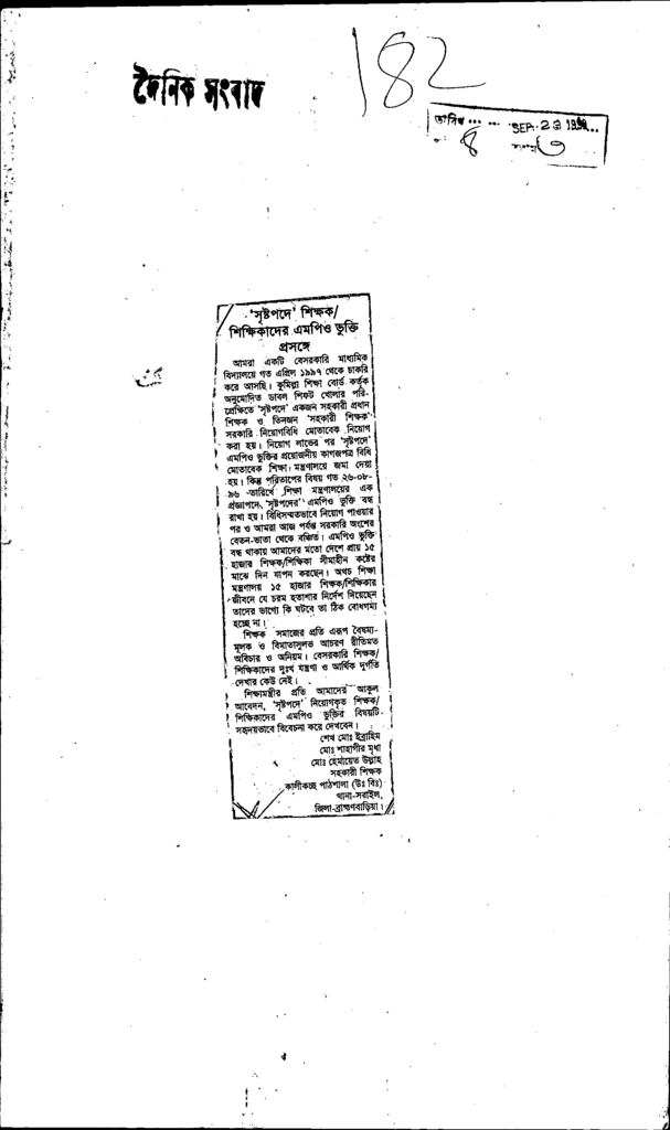 ‘সৃষ্টপদে’শিক্ষক/শিক্ষিকাদের এমপিও ভুক্তি প্রসঙ্গে Published on Newspaper দৈনিক সংবাদ Category Personal Opinion / Discussion / Commentary Personal Speech / Discussion / Comentary Secondary and Higher Secondary Education Download