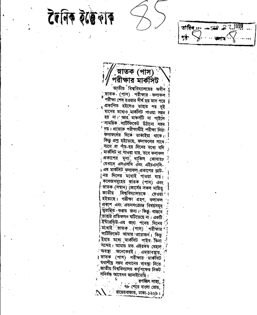 স্নাতক(পাশ)পরীক্ষার মার্কসিট Published on Newspaper দৈনিক ইত্তেফাক Category Personal Opinion / Discussion / Commentary Personal Speech / Discussion / Comentary Secondary and Higher Secondary Education Download