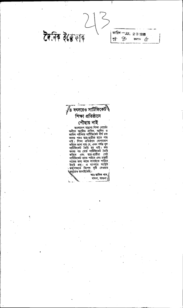 ৪বছরেও সার্টিফিকেট শিক্ষাপ্রতিষ্ঠানে পোঁছায় নাই Published on Newspaper দৈনিক ইত্তেফাক Category Personal Opinion / Discussion / Commentary Personal Speech / Discussion / Comentary Secondary and Higher Secondary Education Download