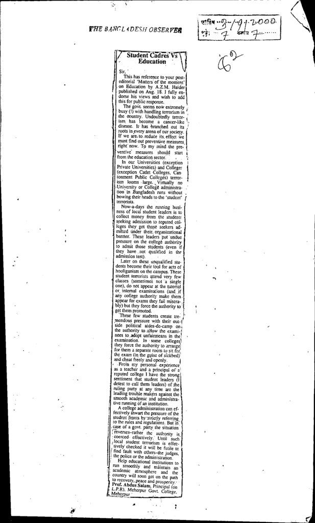 Student cadres vs education Published on Newspaper The Bangladesh Observer Category Personal Opinion / Discussion / Commentary Personal Speech / Discussion / Comentary Secondary and Higher Secondary Education Download
