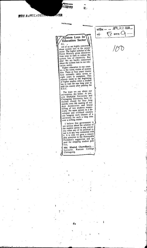 System loss in education sectore Published on Newspaper The Bangladesh Observer Category Personal Opinion / Discussion / Commentary Personal Speech / Discussion / Comentary Secondary and Higher Secondary Education Download