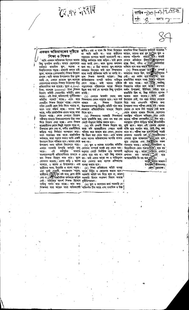একজন অভিভাবকের দৃষ্টিতে শিক্ষা ও শিক্ষক