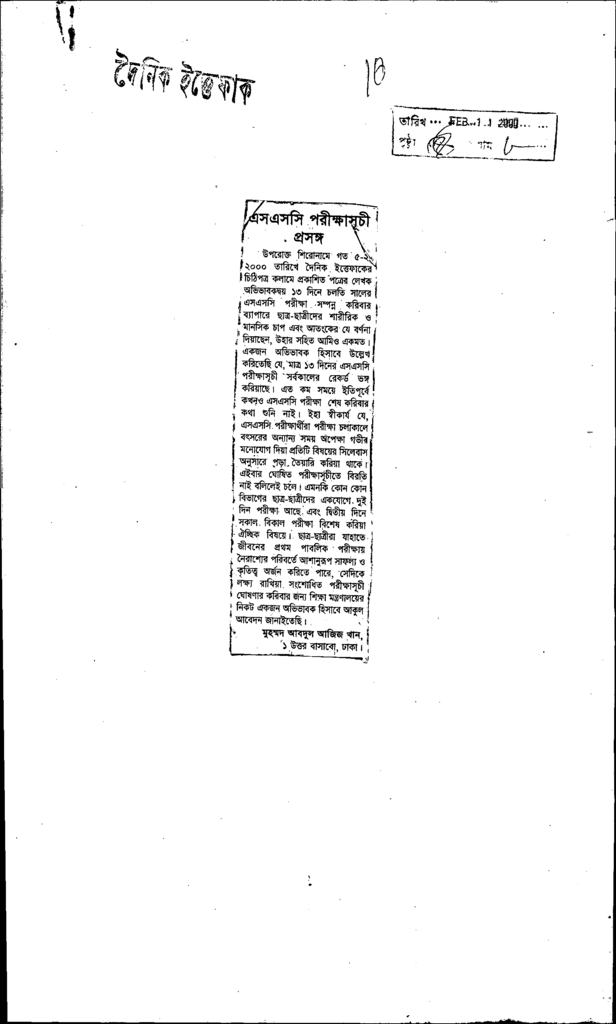এসএসসি পরীক্ষাসূচী প্রসঙ্গে Published on Newspaper দৈনিক ইত্তেফাক Category Personal Opinion / Discussion / Commentary Personal Speech / Discussion / Comentary Secondary and Higher Secondary Education Download