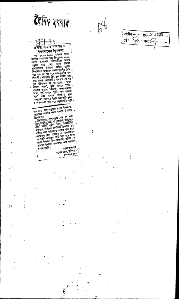 প্রসঙ্গঃ একটি মানপত্র ও শিক্ষাদানের দৈনদশা Published on Newspaper দৈনিক সংবাদ Category Personal Opinion / Discussion / Commentary Personal Speech / Discussion / Comentary Secondary and Higher Secondary Education Download