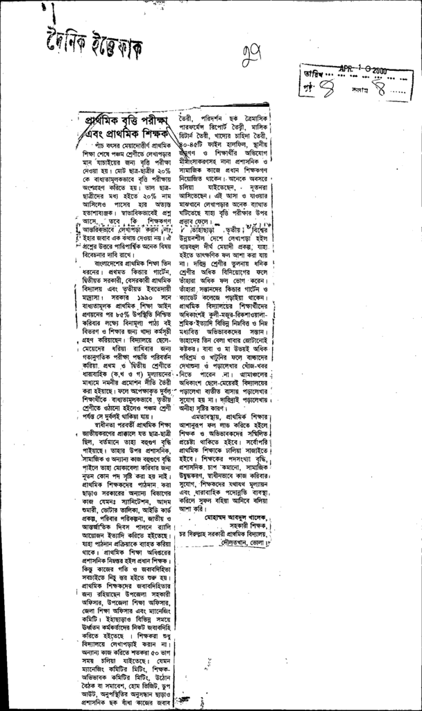 প্রাথমিক বৃত্তি পরীক্ষা এবং প্রাথমিক শিক্ষক Published on Newspaper দৈনিক ইত্তেফাক Category Personal Opinion / Discussion / Commentary Personal Speech / Discussion / Comentary Secondary and Higher Secondary Education Download