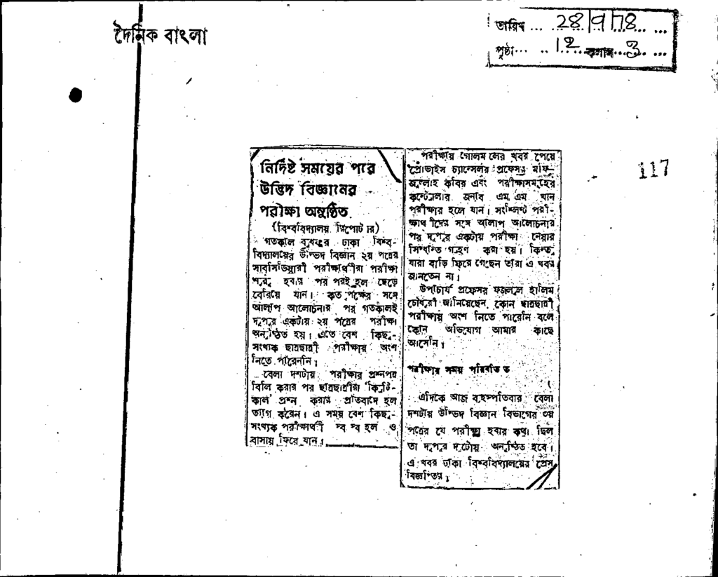নির্দিষ্ট সময়ের পরে উদ্ভিদ বিজ্ঞানের পরীক্ষা অনুষ্ঠিত হবে Published on Newspaper দৈনিক বাংলা Category General Education Download