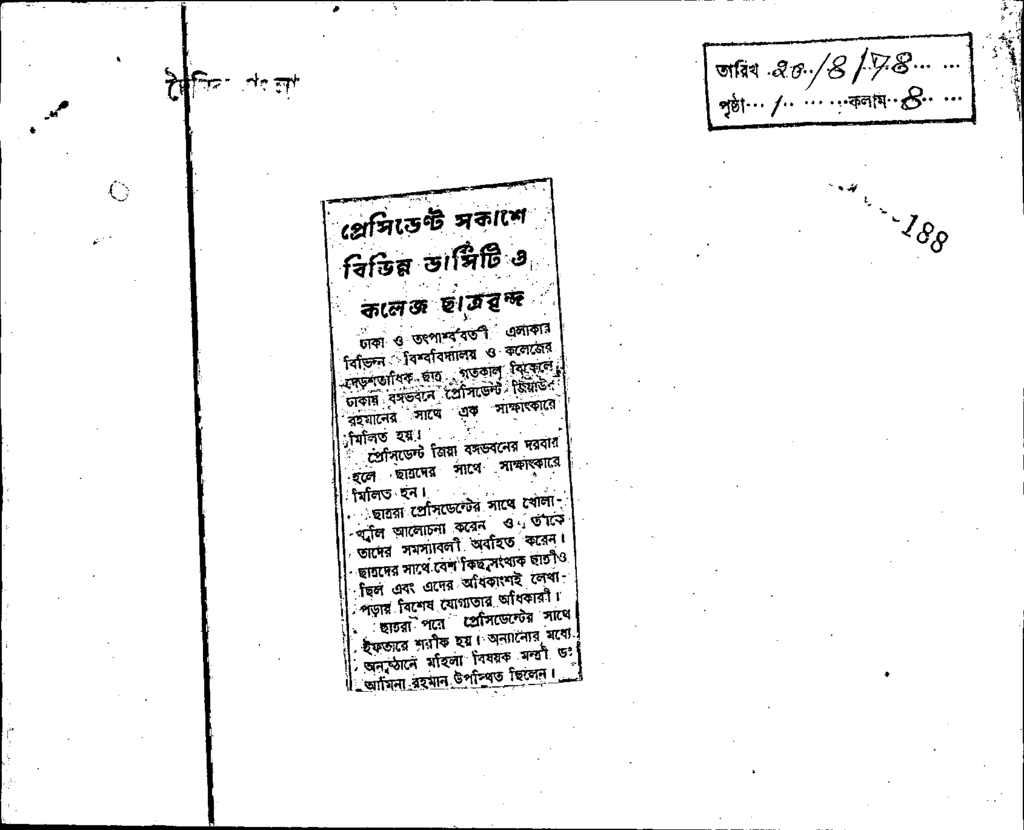প্রেসিডেন্ট সকাশে বিভিন্ন ভার্সিটি ও কলেজ ছাত্রবৃন্দ Published on Newspaper দৈনিক বাংলা Category General Education Download