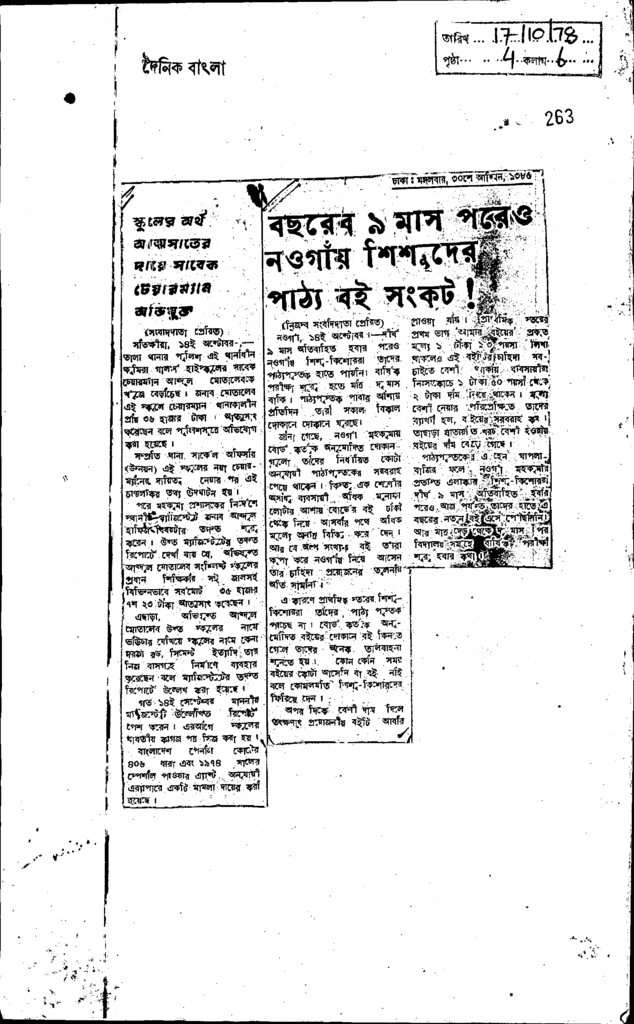 বছরের ৯মাস পরেও নওগাঁয় শিশুদের পাঠ্যবই সংকট! Published on Newspaper দৈনিক বাংলা Category General Education Download