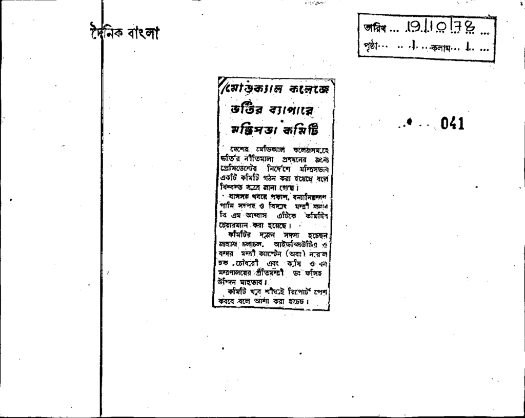মেডিকেল কলেজে ভর্তির ব্যাপারে মন্ত্রীসভা কমিটি
