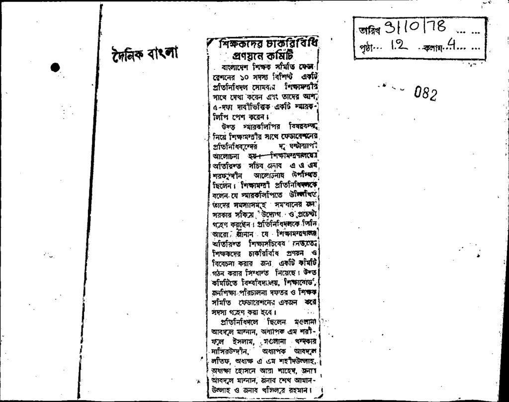 শিক্ষকদের চাকরি বিধি প্রণয়নে কমিটি Published on Newspaper দৈনিক বাংলা Category General Education Download