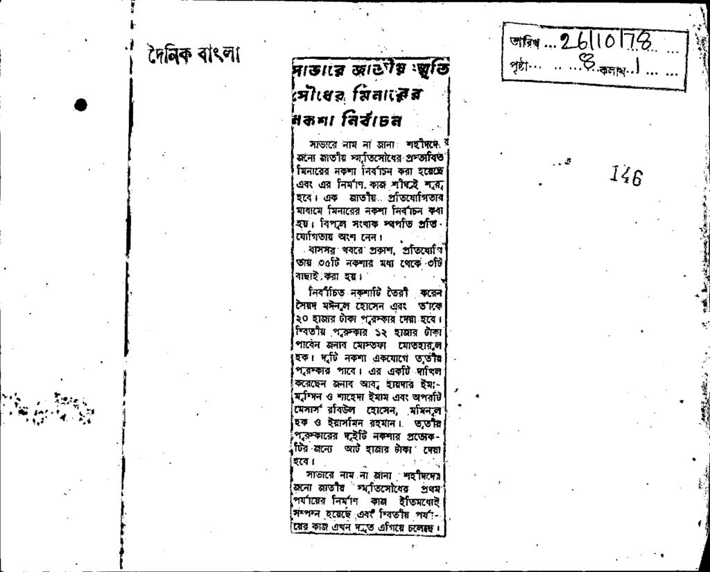 সাভারের জাতীয় স্মৃতি সৌধের মিনারের নকশা নির্বাচন Published on Newspaper দৈনিক বাংলা Category General Education Download