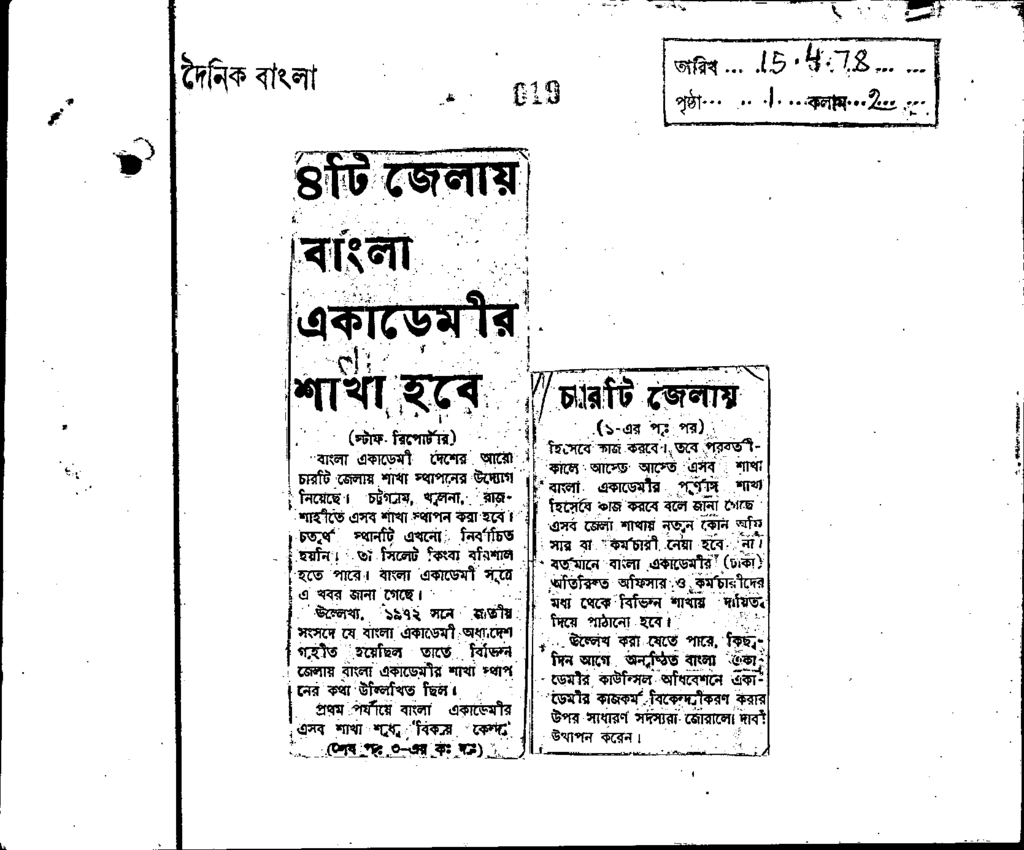 ৪টি জেলার বাংলা একাডেমির শাখা হবে Published on Newspaper দৈনিক বাংলা Category General Education Download