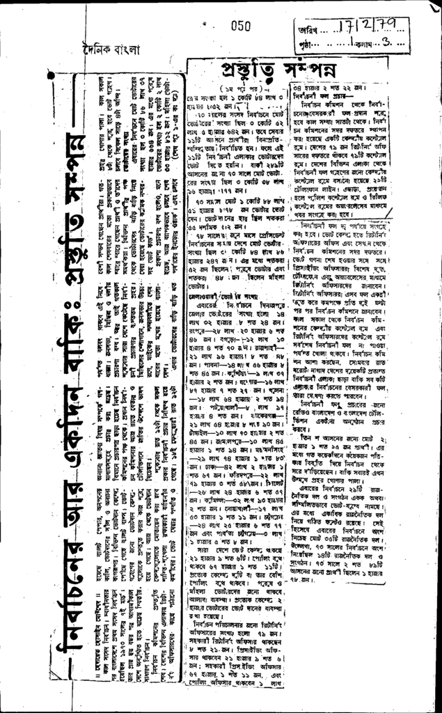 নির্বাচনের আর এক দিন বাকি : প্রস্তুতি সম্পন্ন Published on Newspaper দৈনিক বাংলা Category General Education Download