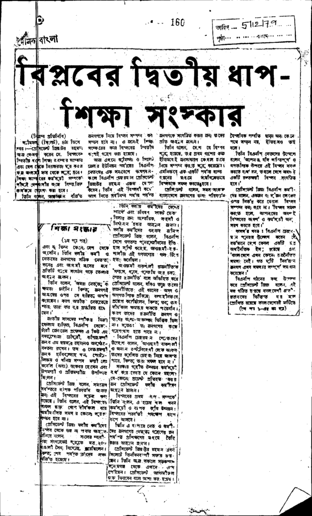 বিপ্লবের দ্বিতীয় ধাপ শিক্ষা সংস্কার Published on Newspaper দৈনিক বাংলা Category General Education Download