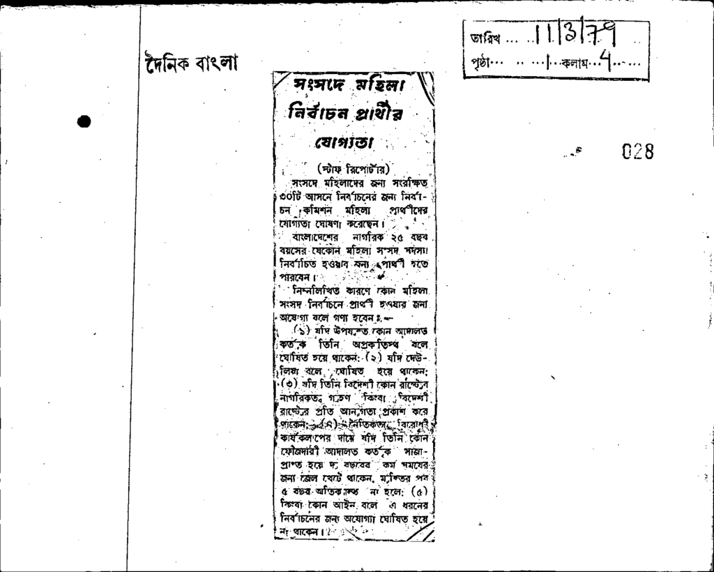 সংসদে মহিলা নির্বাচন প্রার্থীর যোগ্যতা