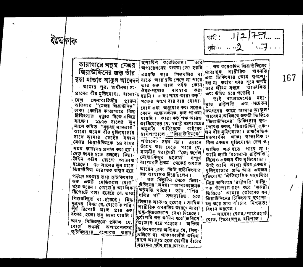 কারাগারে অসুস্থ মেজর জিয়াউদ্দিনের জন্য তাঁর বৃদ্ধা মাতার আকুল আবেদন Published on Newspaper দৈনিক ইত্তেফাক Category General Education Download