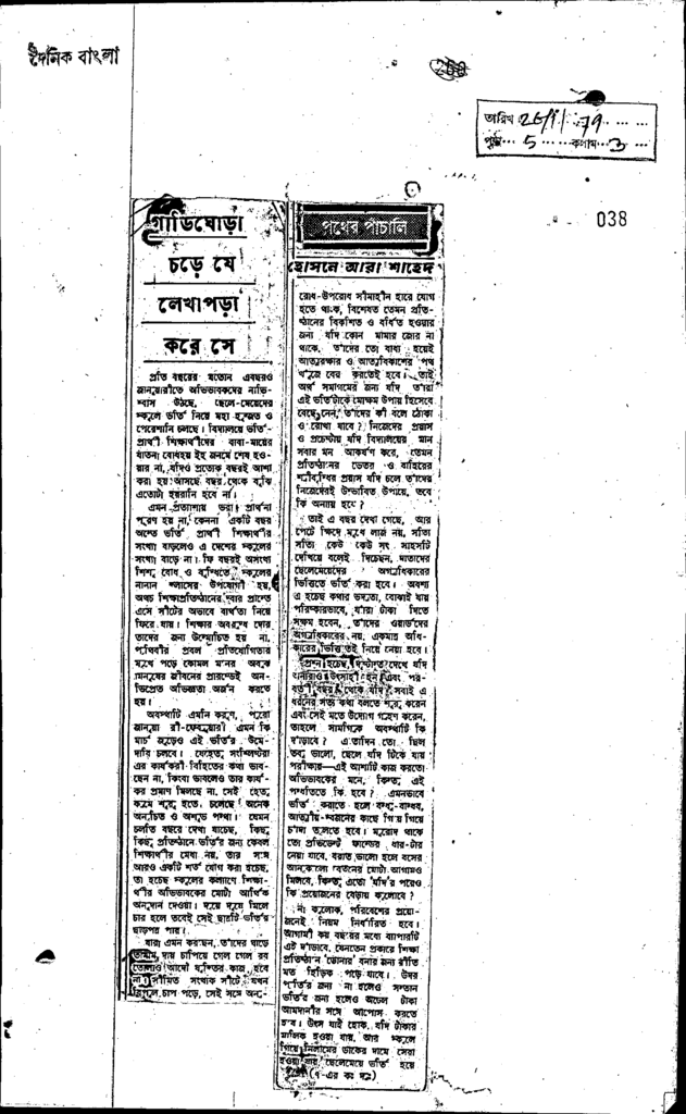 গাড়ি ঘোড়া চড়ে যে লেখাপড়া করে সে Published on Newspaper দৈনিক বাংলা Category General Education Download