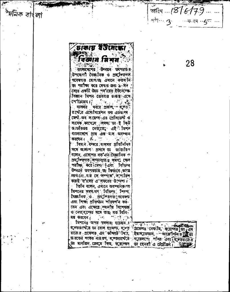 ঢাকায় ইউনেস্কো বিজ্ঞান মিশন