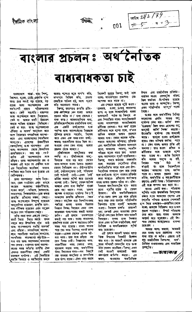 বাংলার প্রচলনঃ অর্থনৈতিক বাধ্যবাধকতা চাই Published on Newspaper দৈনিক বাংলা Category General Education Download