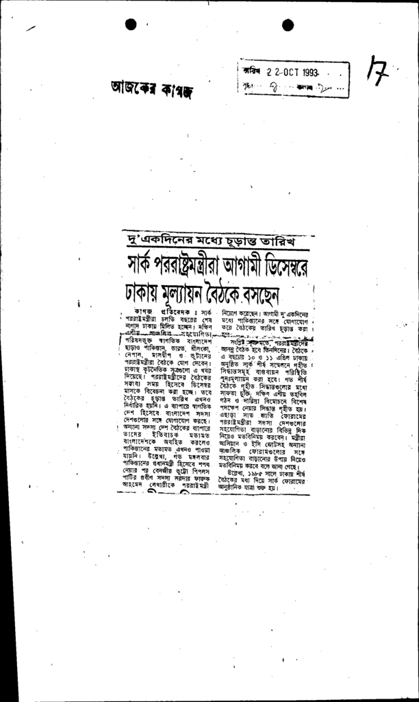 সার্ক পররাষ্টমন্ত্রী আগামী ডিসেম্বরে ঢাকায় মুল্যায়ন বৈঠকে বসছেন