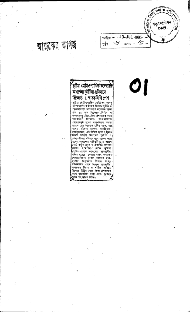 কুষ্টিয়া হোমিওপ্যাথিক কলেজের অধ্যক্ষের দুর্নীতির প্রতিবাদ বিক্ষোভ।। স্বারকলিপি পেশ Published on Newspaper দৈনিক আজকের কাগজ Category Professional Education Professional Education Medical Download