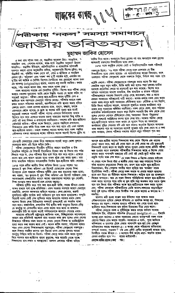 জাতীয় ভবিতব্যতা Published on Newspaper দৈনিক আজকের কাগজ Category Personal Opinion / Discussion / Commentary Personal Speech / Discussion / Comentary Secondary and Higher Secondary Education Download