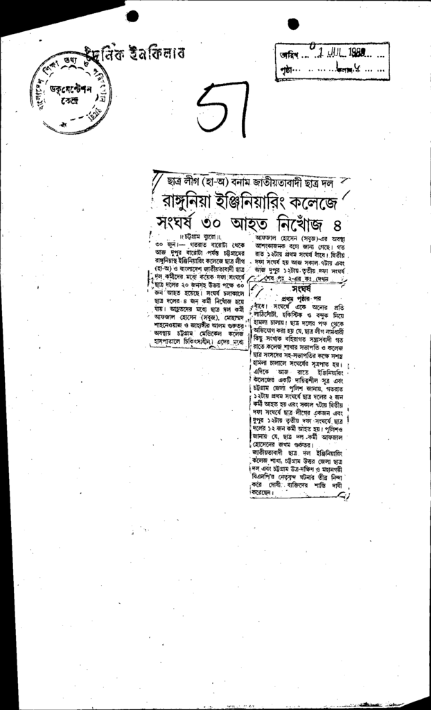 রাঙ্গুনিয়া ইজ্ঞানিয়ারীং কলেজে সংঘর্ষ ৩০জন আহত নিখোঁজ ৪জন