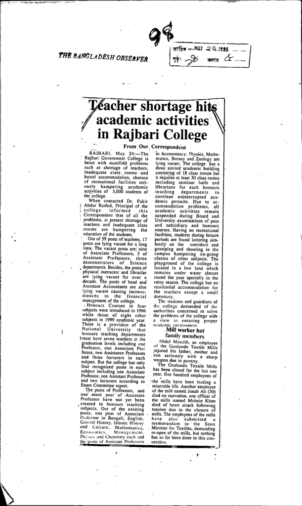 Teacher shortage hits acadeic activities in rajbari college Published on Newspaper The Bangladesh Observer Category Professional Education Professional Education Others Download