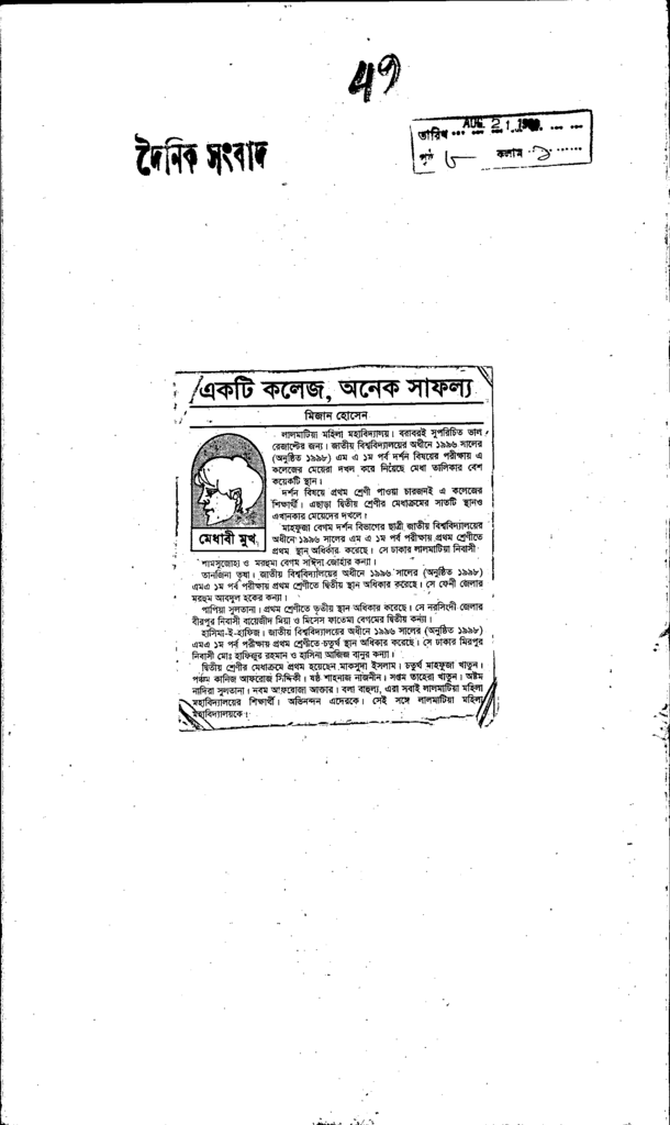 একটি কলেজ, অনেক সাফল্য Published on Newspaper দৈনিক সংবাদ Category Professional Education Professional Education Others Download
