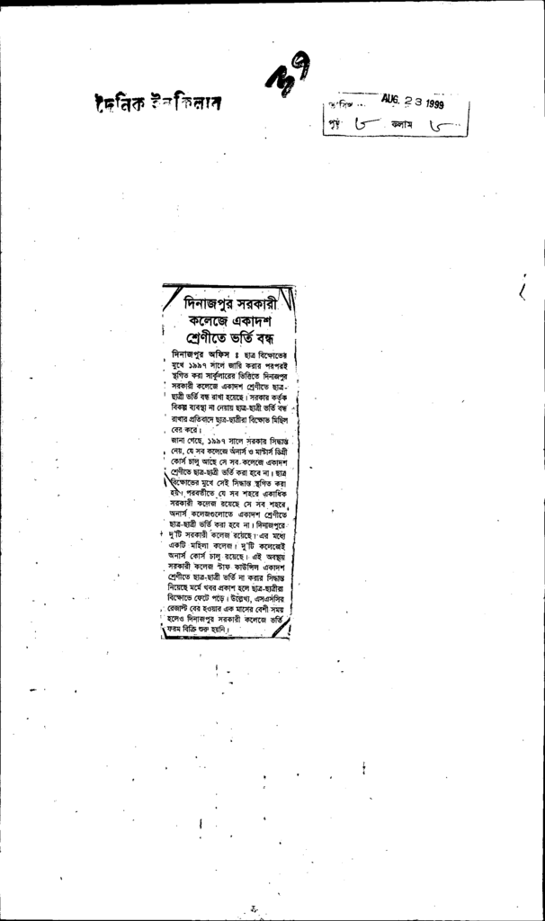 দিনাপজুর সরকারী কলেজে একাদশ শ্রেণীতে ভর্তি বন্ধ Published on Newspaper দৈনিক ইনকিলাব Category Professional Education Professional Education Others Download