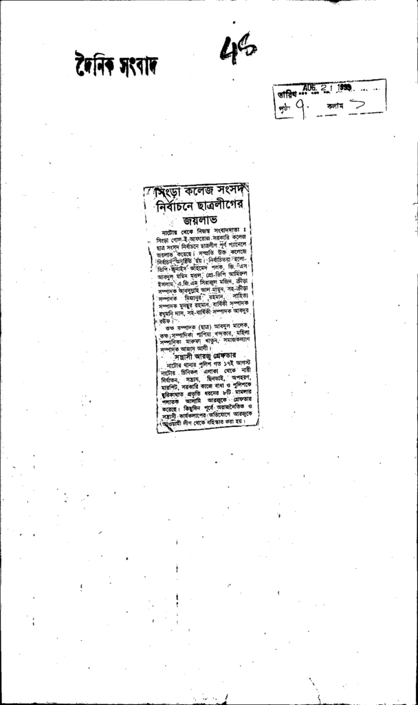 সিংড়া কলেজ সংদ নির্বাচনে ছাত্রলীগের জয়লাভ Published on Newspaper দৈনিক সংবাদ Category Professional Education Professional Education Others Download