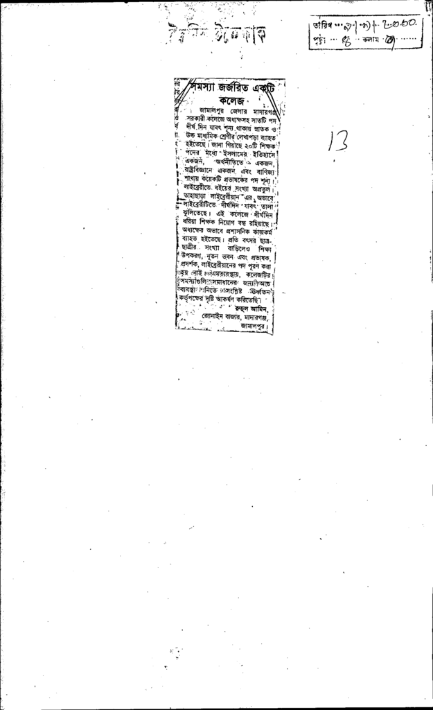 সমস্যা জর্জরিত একটি কলেজ Published on Newspaper দৈনিক ইত্তেফাক Category Professional Education Professional Education Others Download