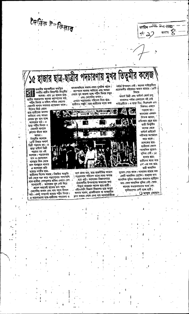 ১৫ হাজার ছাত্র-ছাত্রীর পদচারণায় মুখর তিতুমীর কলেজ Published on Newspaper দৈনিক ইনকিলাব Category Professional Education Professional Education Others Download