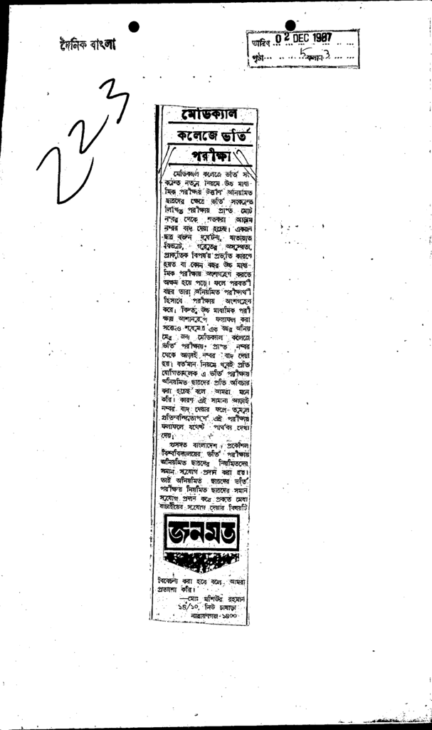 মনিপুর উচ্চবিদ্যা্লয় বার্ষিক পরীক্ষা Published on Newspaper দৈনিক সংবাদ Category Personal Opinion / Discussion / Commentary Personal Speech / Discussion / Comentary Secondary and Higher Secondary Education Download