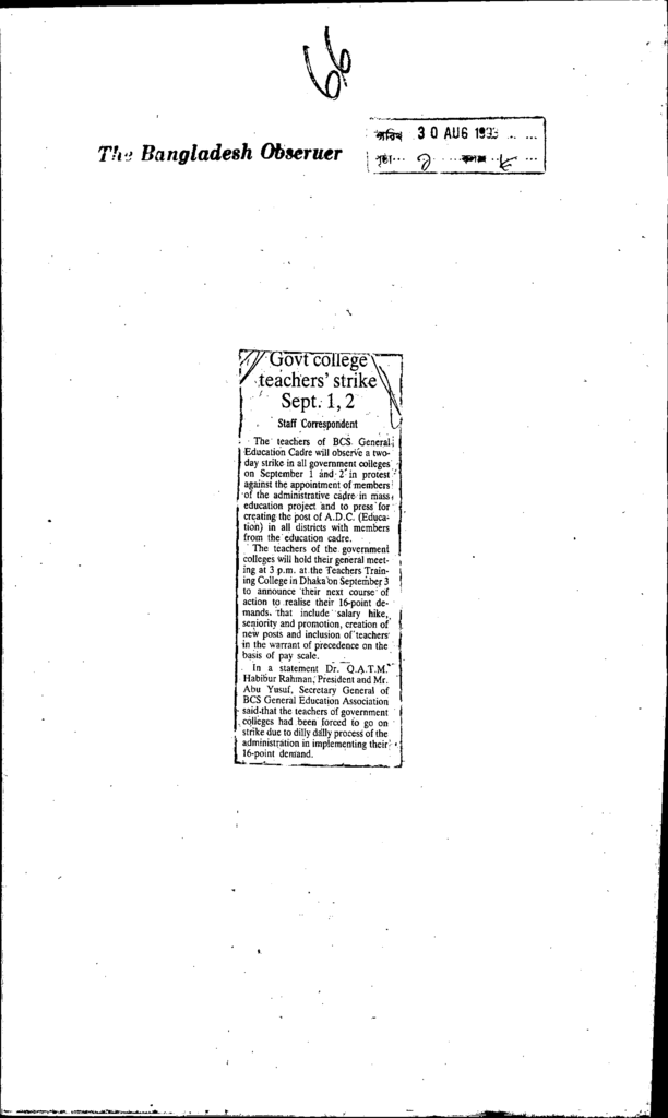 Govt college teachers' strike sept. 1,2 Published on Newspaper The Bangladesh Observer Category Personal Opinion / Discussion / Commentary Personal Speech / Discussion / Comentary Higher Education Download