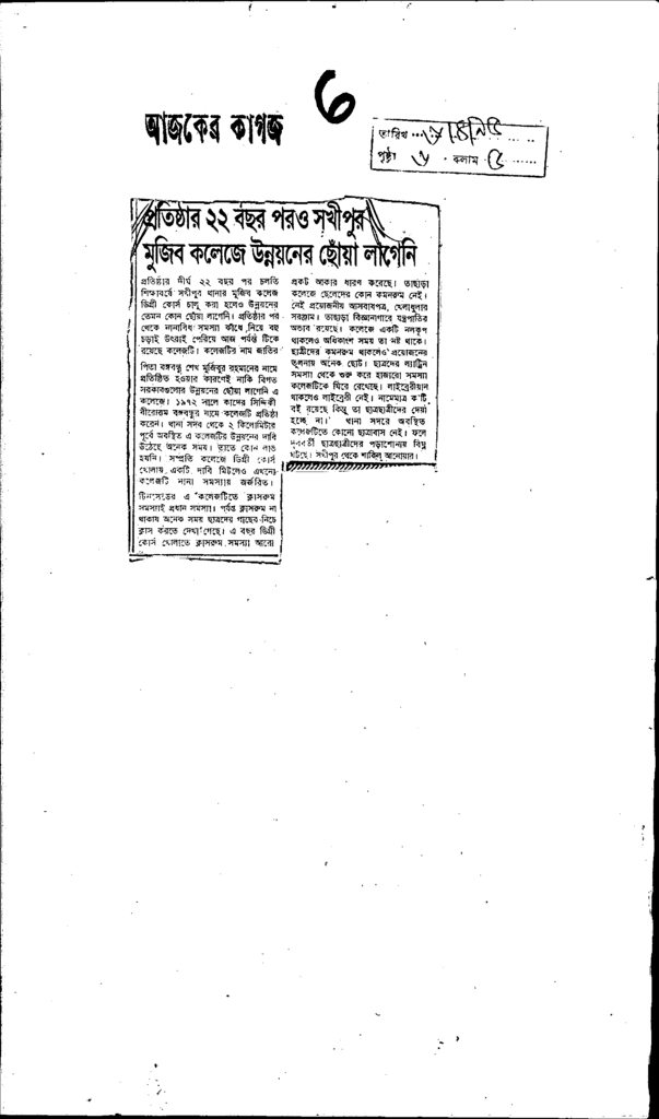 প্রতিষ্ঠার ২২ বছর পরও সখীপুর মুজিব কলেজে উন্নয়নের ছোঁয়া লাগেনি Published on Newspaper দৈনিক আজকের কাগজ Category General Education General Education Download
