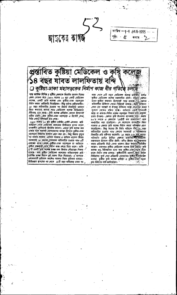 প্রস্তাবিত কুষ্টিয়া মেডিকেলও কৃষি কলেজ ১৪ বছর যাবত লালফিতায় বন্দি Published on Newspaper দৈনিক আজকের কাগজ Category General Education General Education Download