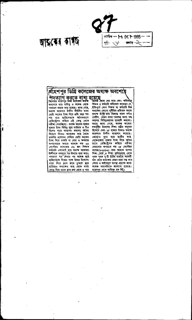 মহেশপুর ডিগ্রী কলেজের অধ্যক্ষ অবশেষে পদত্যাগ করতে বাধ্য হয়েছে Published on Newspaper দৈনিক আজকের কাগজ Category General Education General Education Download