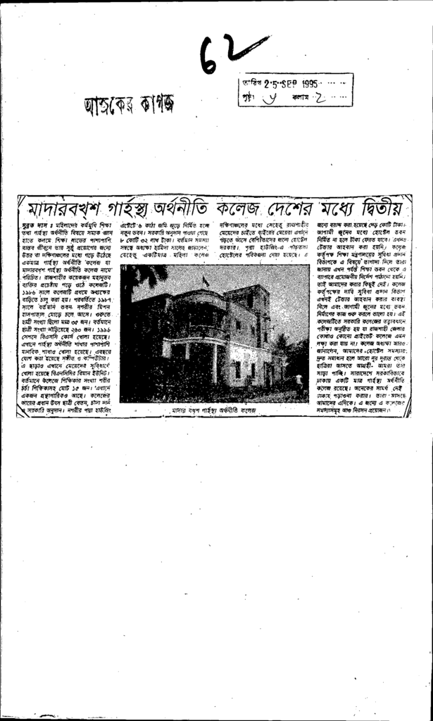 মাদরবখশ গার্হস্থ্য অর্থনীতি কলেজ দেশের মধ্যে দ্বিতীয় Published on Newspaper দৈনিক আজকের কাগজ Category General Education General Education Download