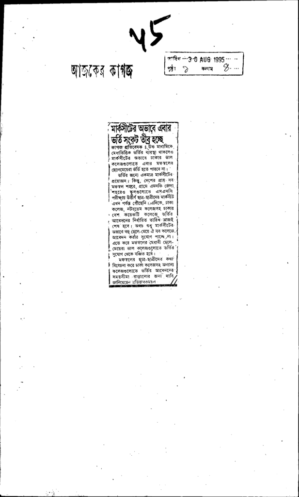 মার্কসীটের অভাবে এবার ভর্তি তীব্র হচ্ছে Published on Newspaper দৈনিক আজকের কাগজ Category General Education General Education Download