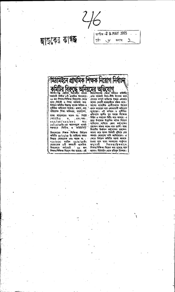 মিঠামইনে প্রাথমিক শিক্ষক নিয়োগ নির্বাচন কমিটির বিরুদ্ধে অনিয়মের অভিযোগ Published on Newspaper দৈনিক আজকের কাগজ Category General Education General Education Download