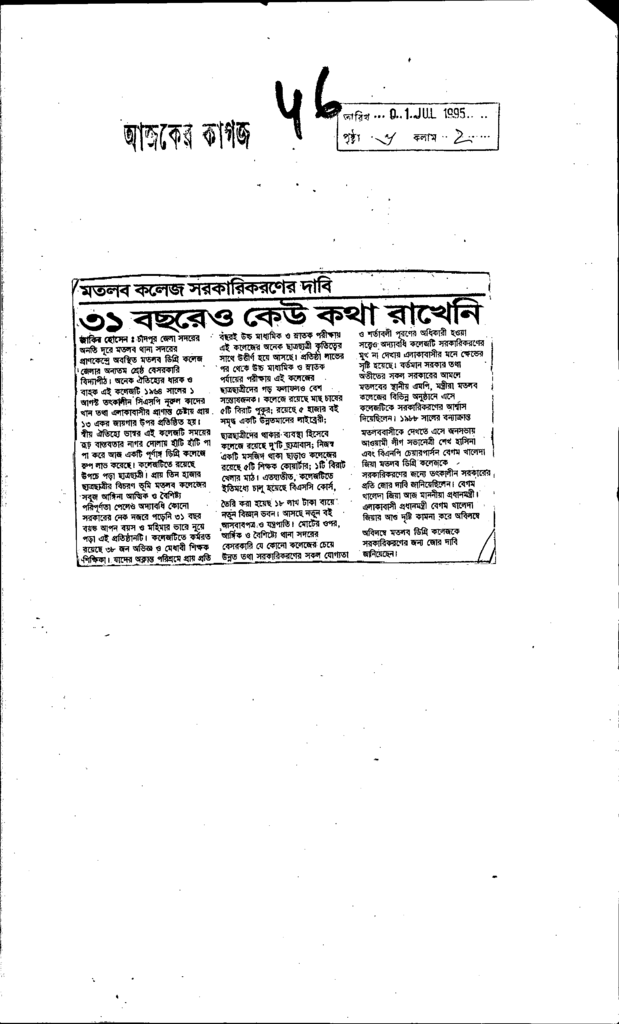 ৩১ বছরেও কেউ কথা রাখেনি Published on Newspaper দৈনিক আজকের কাগজ Category General Education General Education Download