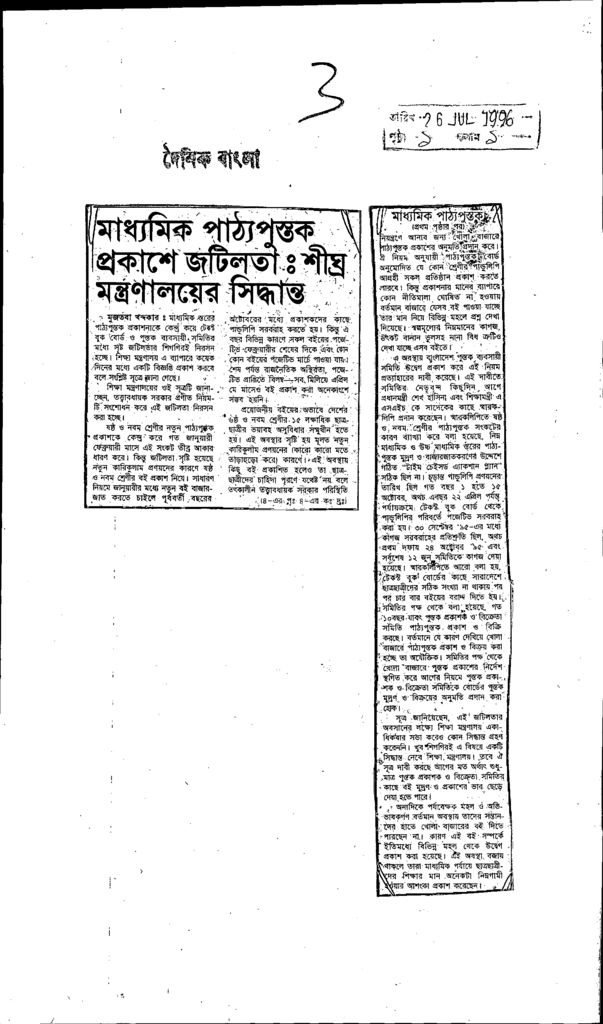 মাধ্যমিক পাঠ্যপুস্তক প্রকাশে জটিলতারঃ শীঘ্র মন্ত্রণালয়ের সিদ্ধান্ত Published on Newspaper দৈনিক বাংলা Category General Education General Education Download