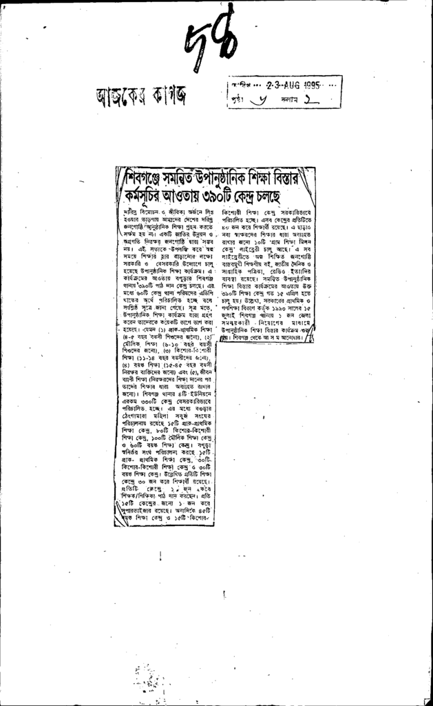 শিবগঞ্জে সমন্বিত উপানুষ্ঠানিক শিক্ষা বিস্থার কর্মসূচির আওতায় ৩৯০টি কেন্দ্র চলছে Published on Newspaper দৈনিক আজকের কাগজ Category Educational Ministry / Departments Education Ministry / Division / Directorate Download