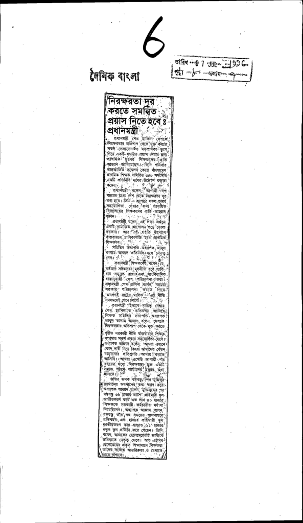 নিরক্ষরতা দূর করতে সমন্বিত প্রয়াস নিতে হবে প্রধানমন্ত্রী Published on Newspaper দৈনিক বাংলা Category Educational Ministry / Departments Education Ministry / Division / Directorate Download