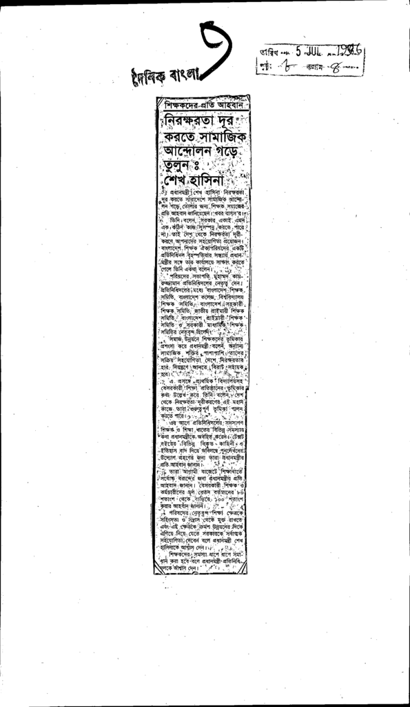 নিরক্ষরতা দূর করতে সামাজিক আন্দোলন গড়ে তুলুনঃ শেখ হাসিনা Published on Newspaper দৈনিক বাংলা Category Educational Ministry / Departments Education Ministry / Division / Directorate Download
