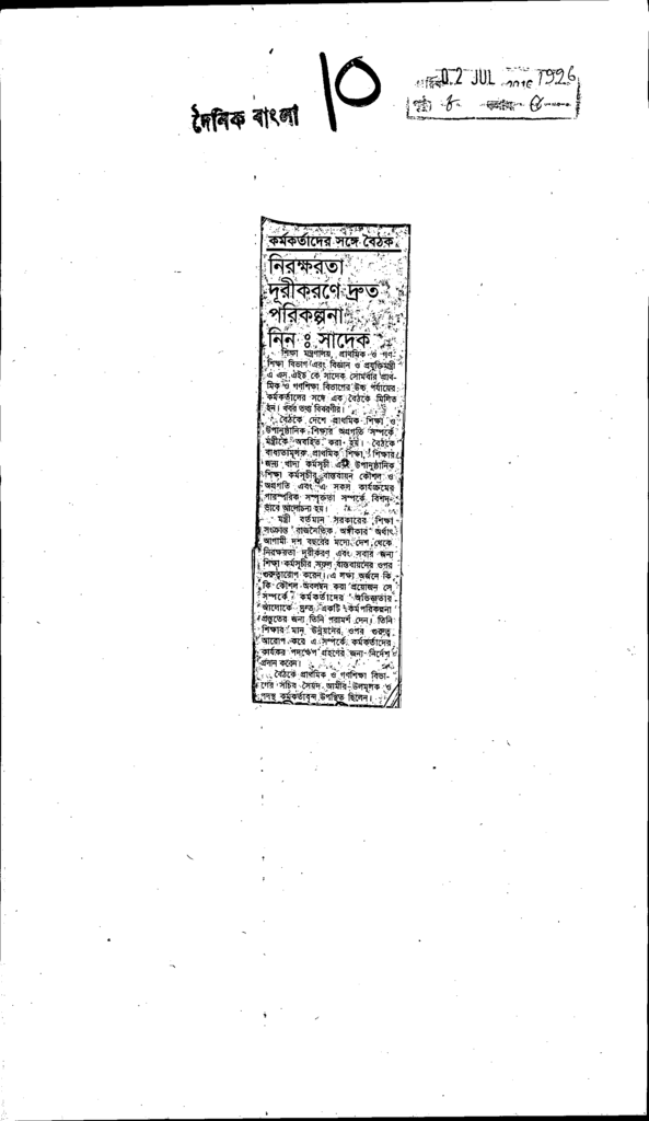নিরক্ষরতা দূরীকরণে দূরীকরণের দ্রুত পরিকল্পনা নিনঃ সাদেক Published on Newspaper দৈনিক বাংলা Category Educational Ministry / Departments Education Ministry / Division / Directorate Download