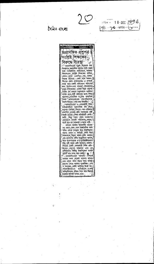 অপ্রাসঙ্গিক পশ্নপত্র সংশ্লিষ্ঠ শিক্ষকের বিরুদ্ধে ব্যবস্থা Published on Newspaper দৈনিক বাংলা Category Personal Opinion / Discussion / Commentary Download