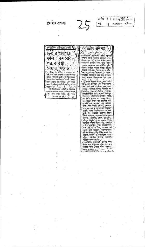 ডিগ্রীর পশ্নপত্র ফাঁস তদন্তের পর ব্যবস্থা নেয়ার সিদ্ধান্ত Published on Newspaper দৈনিক বাংলা Category Personal Opinion / Discussion / Commentary Download